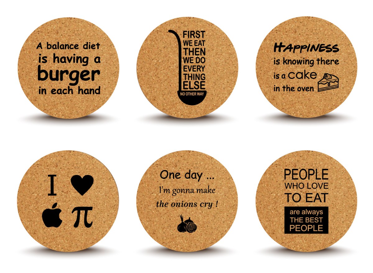 תחתיות משעם עגולות ומרובעות עם חריטה אומנותית בלייזר.