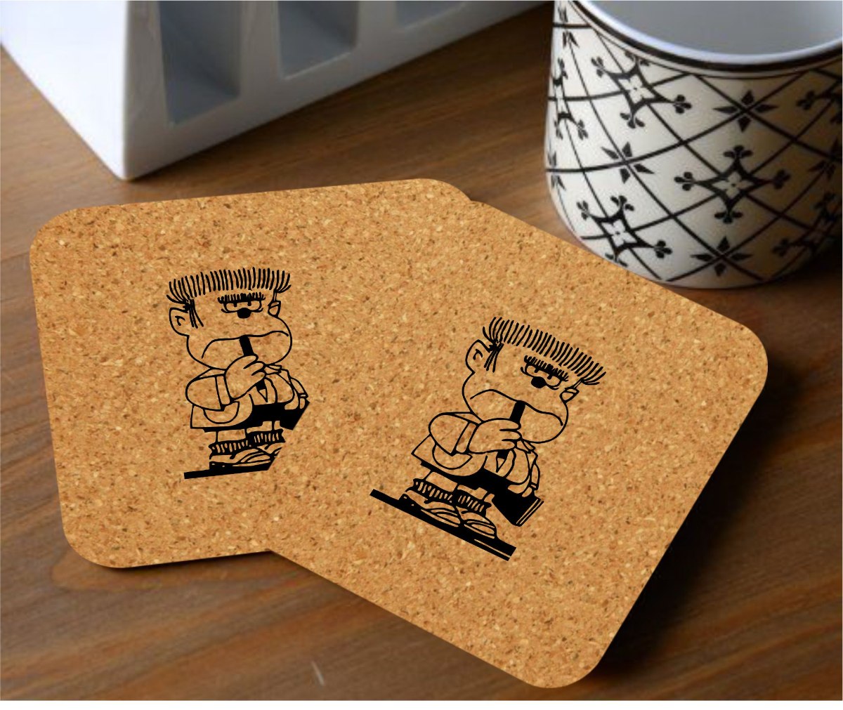 תחתיות משעם עגולות ומרובעות עם חריטה אומנותית בלייזר.